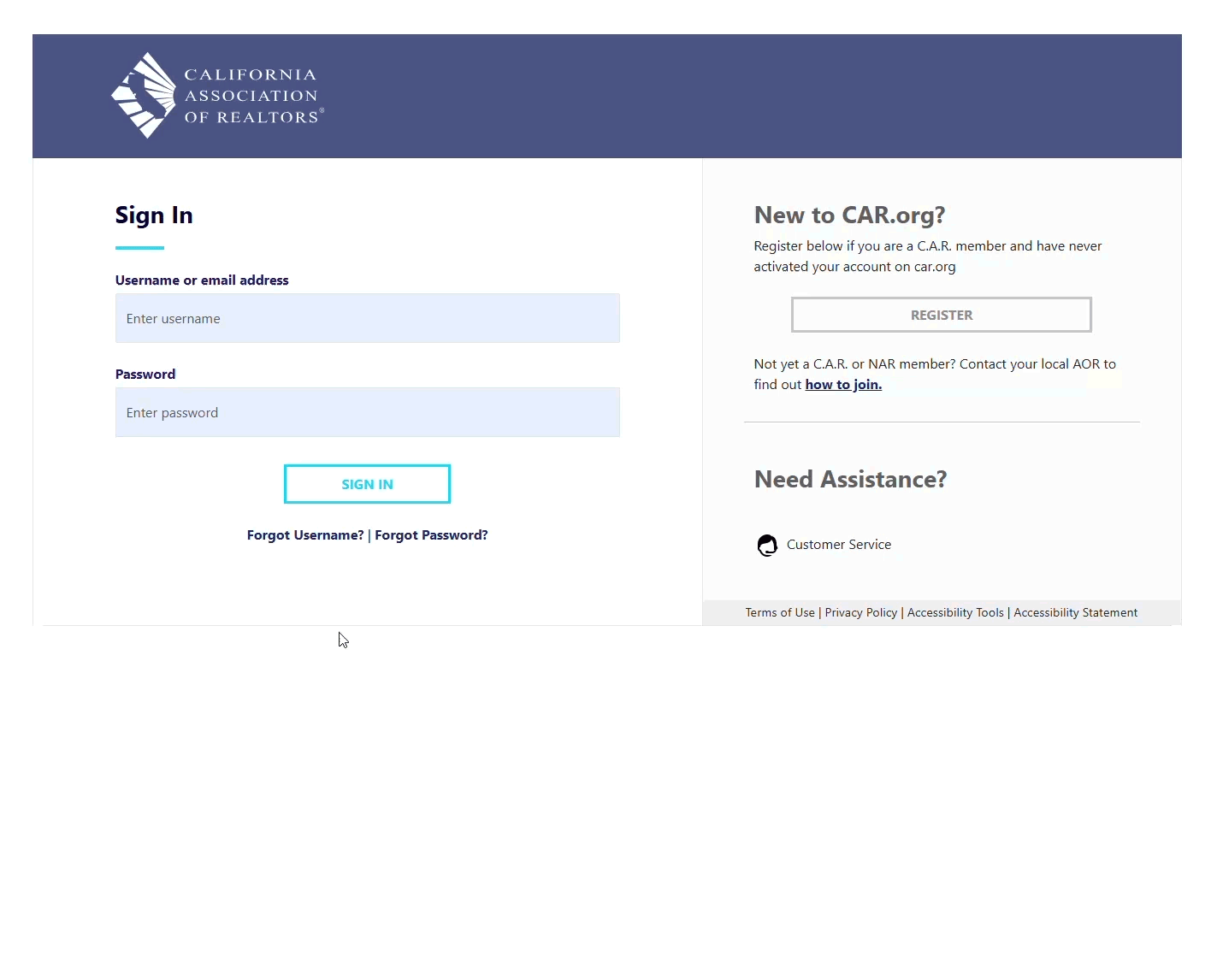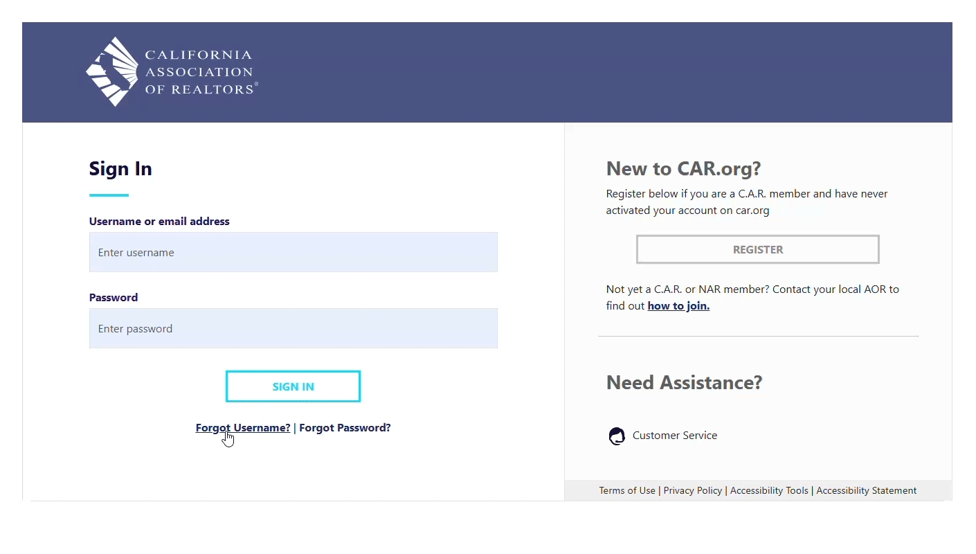 If you are a C.A.R. member, local association staff or authorized non-member, you may use the following steps to create a username and password on our website.